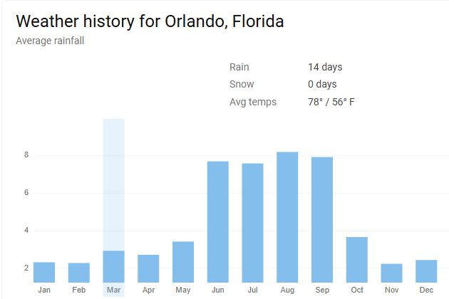 Obviously, the chance of rain is highest in the summer, and *importantly* it is highest in the afternoon/early evening. Also, the afternoon sun is daunting. Have a backup plan. Seriously. Consider morning (9 or 10 AM). I've travelled almost every state in the union (and quite a few places internationally), the peninsula nature of Florida gives it a unique weather pattern.